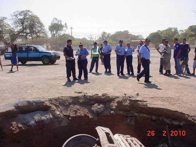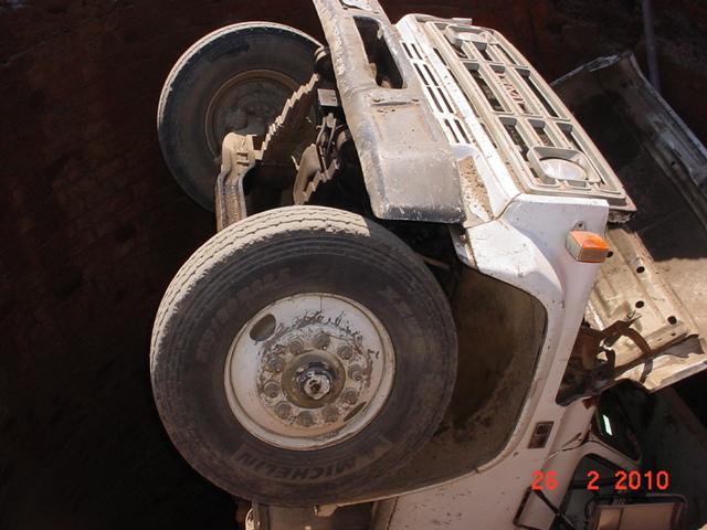 La verdad es que en el lugar donde la tierra se tragó el camión junto con chofer y ayudantes, es una fosa como de 6 metros de diámetro y mas de 15 de profundidad, con paredes de ladrillo cuarterón, que parece ser una especie de silo, que en algún tiempo fue ocupado como sumidero.